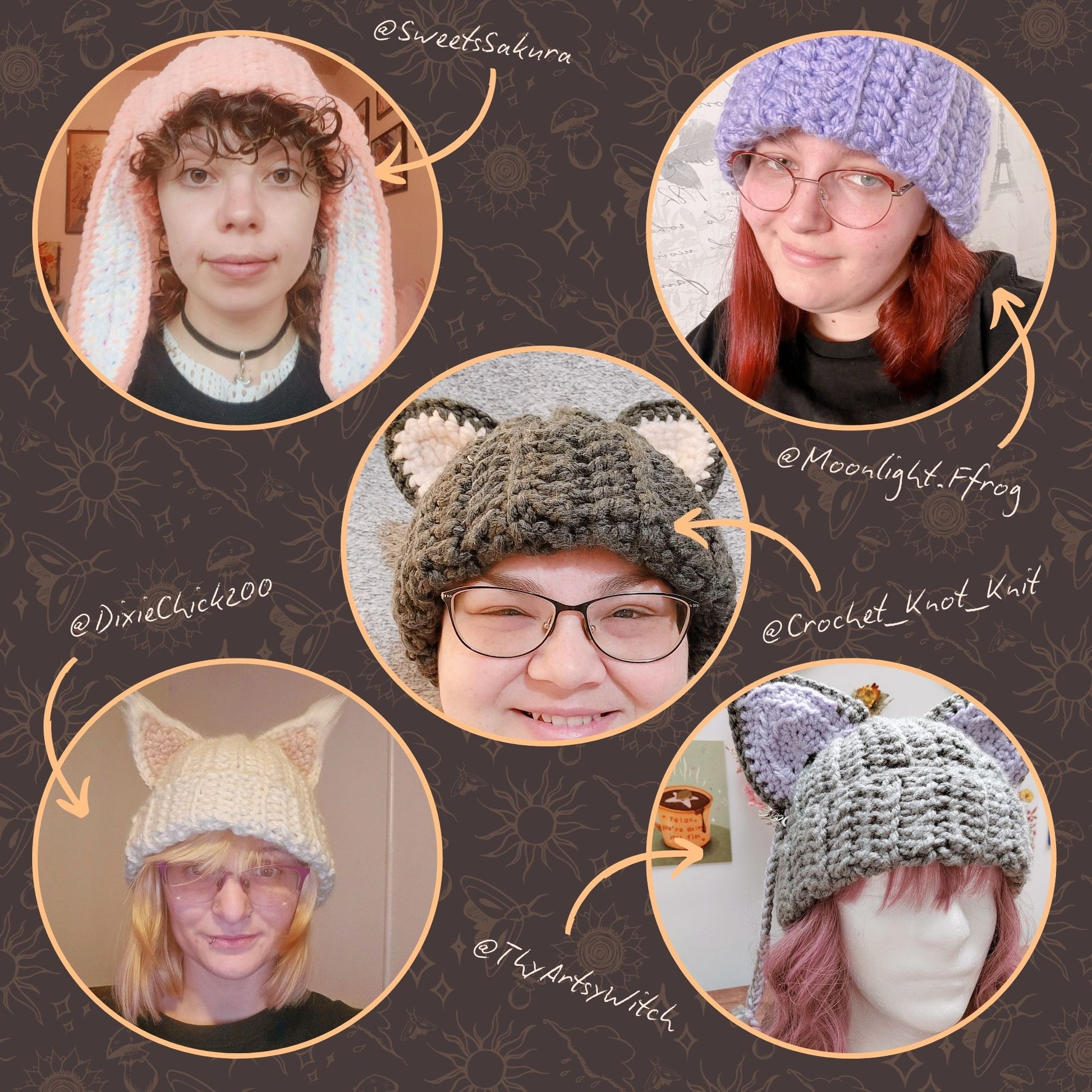 6-in-1 Animal Ear Beanie Crochet Pattern Bundle
